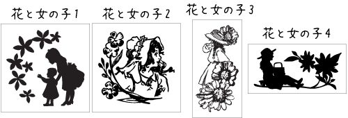 モチーフのサイズ【花と女の子1】39×39(mm)【花と女の子2】39×37(mm)【花と女の子3】22×44mm)【花と女の子4】44×21(mm) 布用インクで押してオリジナル作品のワンポイントに、また、コラージュ、スクラップブッキングにもおすすめです! ご購入時のご注意 ■お支払い・配送につきましては「お支払い・配送」のページをご覧下さい。